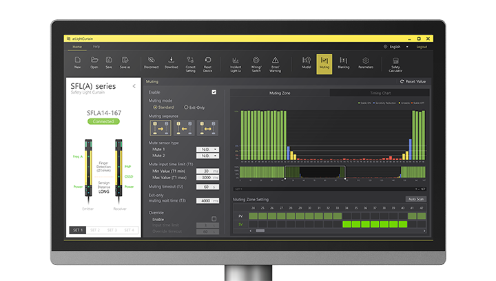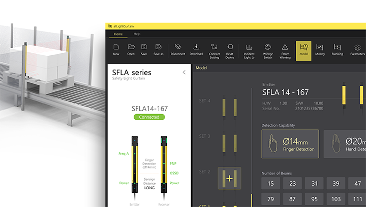 When the light curtains are connected to PCs, the software can automatically recognize the models and import model information from the units