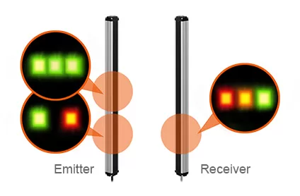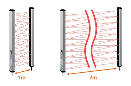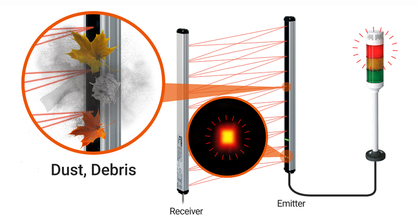 3-Point cross-beam detection method minimizes non-detection area for tight sensing coverage area.