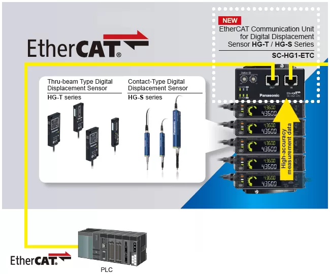 - Connects HG-T / HG-S series digital displacement sensors directly to EtherCAT!