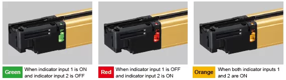 Can light and blink in three colors (green, red, and orange) according to an external input. The indicator can be used to indicate work instructions or equipment status.
