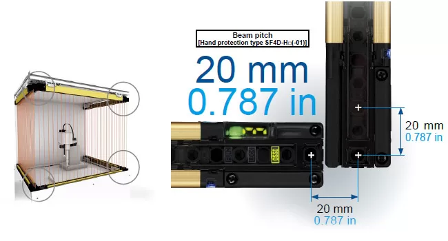 Inherits the dead zoneless design of the previous SF4B series. Even in an L-shaped layout or a U-shaped layout, the beam pitch does not change*, making calculation of the safe distance easier.