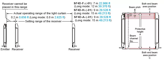 1) The required number for emitter and receiver varies depending on the number of beam channels.