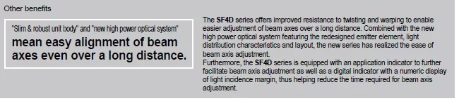 We incorporated the element alignment technology that we cultivated for fiber sensors in the safety light curtain. This minimizes curves due to emitter and receiver mounting deviations and quality deviations due to differences in individual elements.