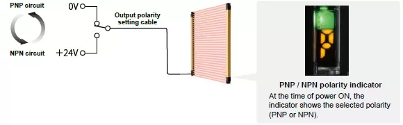 Polarity indication The indicator shows the set polarity when power is turned on. This makes it easy to confirm proper operation after wiring. |