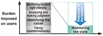 With the Self-Monitoring Sensor, you can immediately judge the state of the sensor and easily identify the cause of failure. Thus, this sensor contributes to the reduction of the burden experienced by the client in collecting and analyzing data.