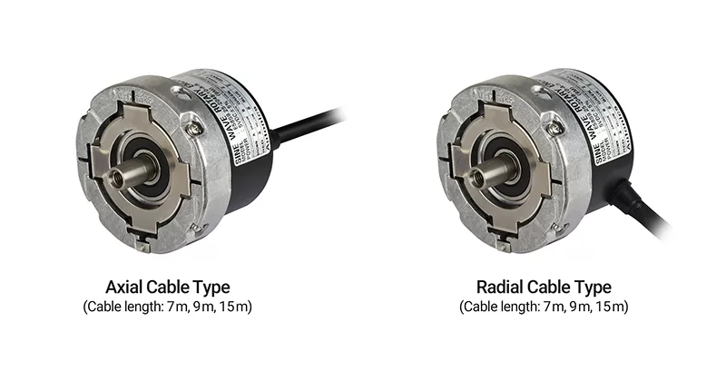The encoders are available in axial or radial cable types in 7 m, 9 m, and 15 m cable lengths, allowing flexible application in diverse environment settings.