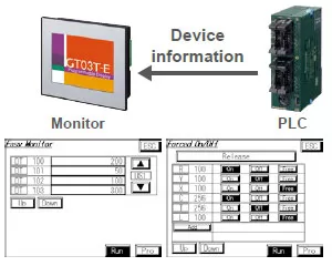 This function allows operators to simultaneously carry out the transfer of screen data of a GT series display and the debugging of our FP series PLC connected to the display.