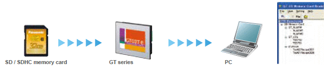1) Installation on the PC of GT_SD_Reader software is required. This software is installed simultaneously with Terminal GTWIN (Ver. 2.E1 and higher).