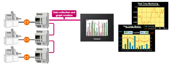 Capable of automatically collecting electrical power readings of Eco-POWER METERS and displaying them in a real time graph, allowing users to take quick actions for solutions.