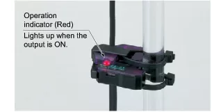 Either Light-ON or Dark-ON can be selected by a switch. This is useful to check the operation during installation because it forces the output to be turned ON or OFF even without the liquid being inside the pipe.