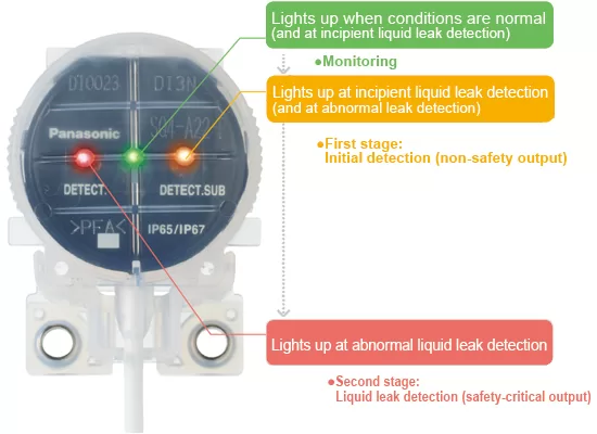 Lights up at incipient liquid leak detection (and at abnormal leak detection)