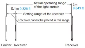 1) The operating range is the possible setting distance between the emitter and the receiver.